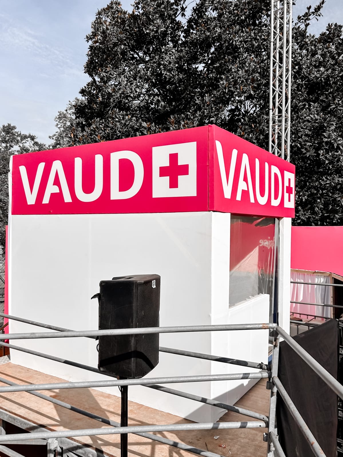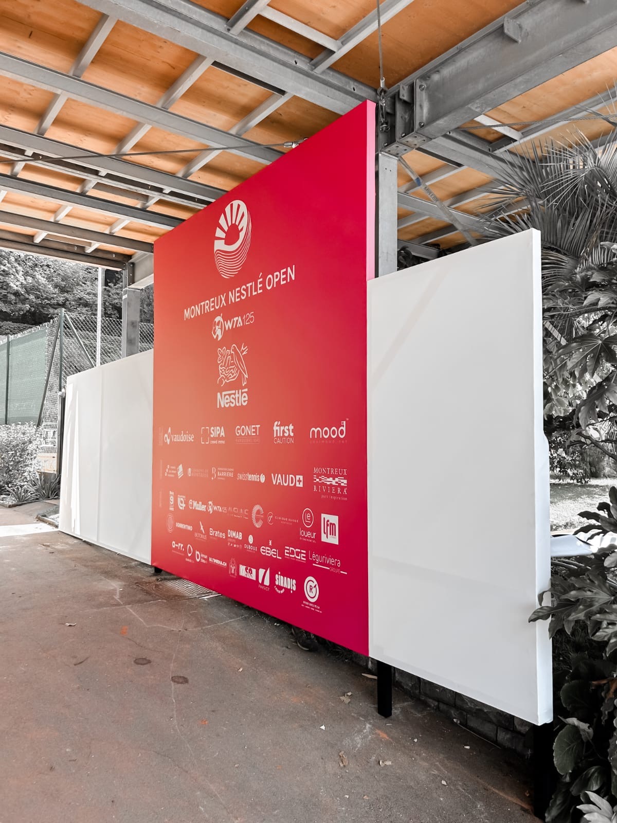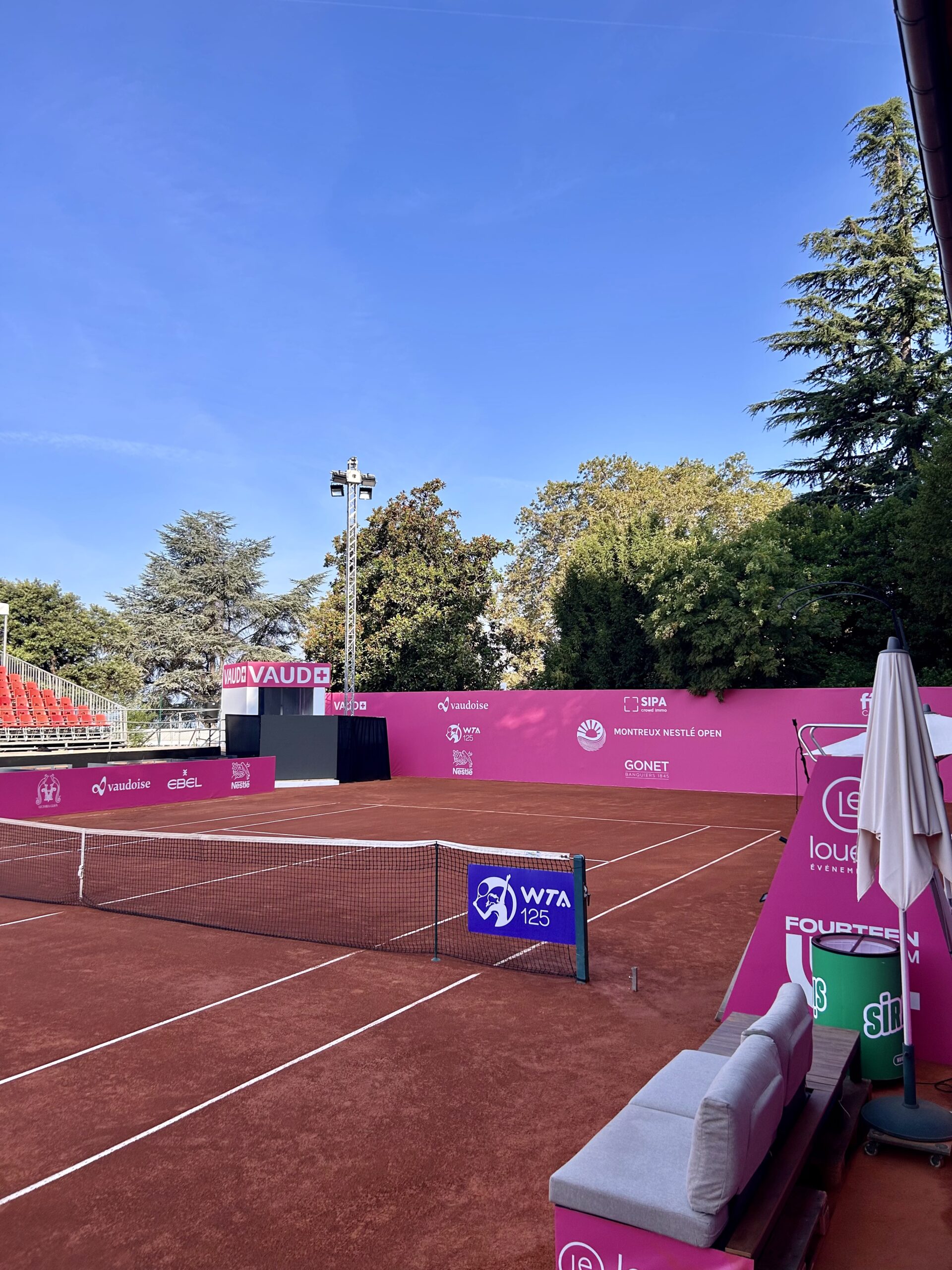 Installation de châssis en bois pour la pose de bâches sur toute la surface du terrain de tennis en vue de l’accueil de la WTA 2024, ainsi que la création d’une zone VIP.
